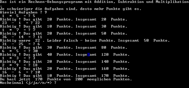 PRINT "Das ist ein Rechnen-Uebungsprogramm mit Addition, Subtraktion und Multiplikation."